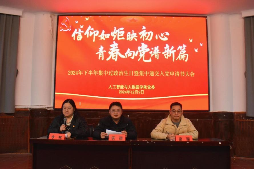 12月9日,我院在学术报告厅隆重举行了2024年下半年集体过政治生日暨集中递交入党申请书大会。此次大会旨在激励广大青年学子积极向党组织靠拢,表达他们为共产主义事业奋斗终身的决心与信念。各班级代表、入党积极分子以及党员同志共同参与了这一庄严时刻。