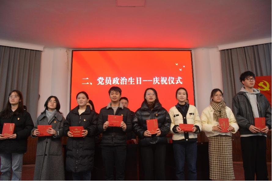 在党员政治生日庆祝环节,党组织为近期入党的同志送上了温馨的祝福,并鼓励他们继续发挥先锋模范作用。随后,全体党员在领誓人的引领下,面对鲜红的党旗,举起右手,重温入党誓词,彰显了党员们对共产主义事业的坚定信仰和不懈追求。