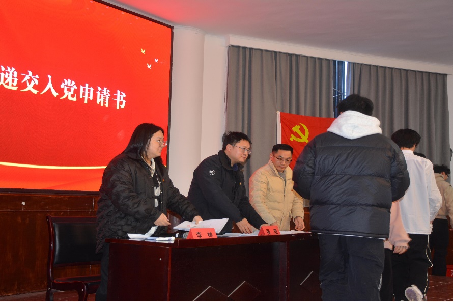 在热烈的掌声中,大会迎来了集中递交入党申请书的环节。来自不同班级的学生代表,怀揣着精心准备的入党申请书,逐一登台,向党组织表达自己加入中国共产党的热切愿望和坚定决心。