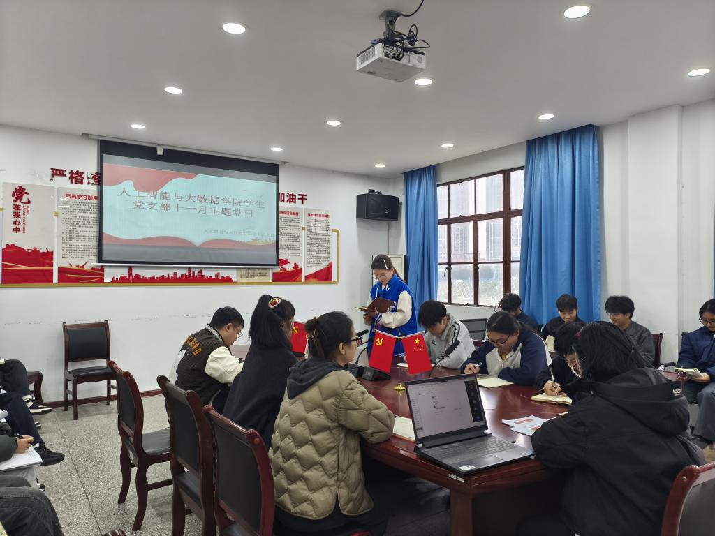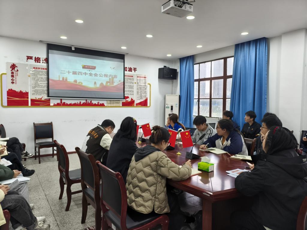 为深入学习贯彻党的二十届四中全会精神,推动理论学习往深里走、往实里走,促进理论认知与实践探索深度融合,2025年11月7日中午12点20分,我院学生党支部在二教楼606会议室成功举办党课暨十一月主题党日活动。活动由支部书记李林主持,全体党员及预备党员同志参加。