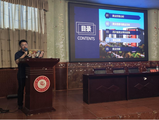 6月12日,我院于南坝校区学术报告厅开展了2025届学生教育动员会。出席本次会议的有我院院长杨成福、党委副书记侯翔、副院长梁弼、我校武装保卫部(处)副处长蒲江勇、通川区人武部军事科参谋秦旭东、我院教科办主任童恋然、专职辅导员李林、胡雪莲、廖婷、企业代表李佩珂、钟寒、陈绍文、黄爽、杨平平、彭金渝、龚兵、杨述江,以及2021级全体学生。本次教育动员会旨在为即将迈入大四的学子们提供丰富的就业信息与实用资源,帮助他们明确个人发展目标与职业方向,进一步激发他们迈向成功的信心与决心。