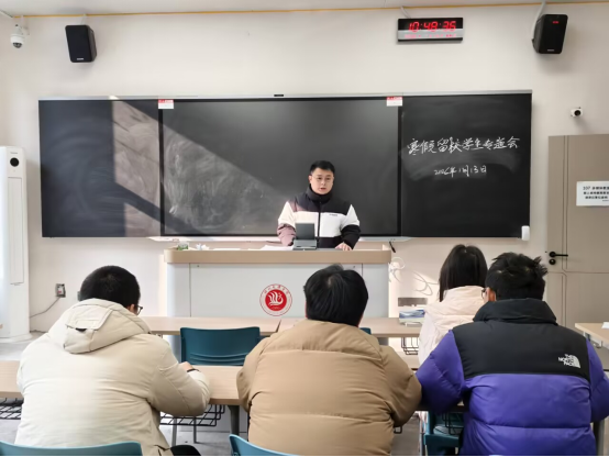 会议最后,谭力川老师对留校学生提出三点要求:一是提高安全警惕,将安全意识融入假期生活的每一个细节;二是严格遵守规定,自觉履行留校承诺,配合学院与公寓的管理工作;三是保持沟通畅通,定期向辅导员报备个人动态,提前离校需按要求在宿管员处登记。学校相关部门将持续做好假期校园巡查与设施维护,为留校学生提供必要的服务支持,共同营造安全、温暖的假期环境。