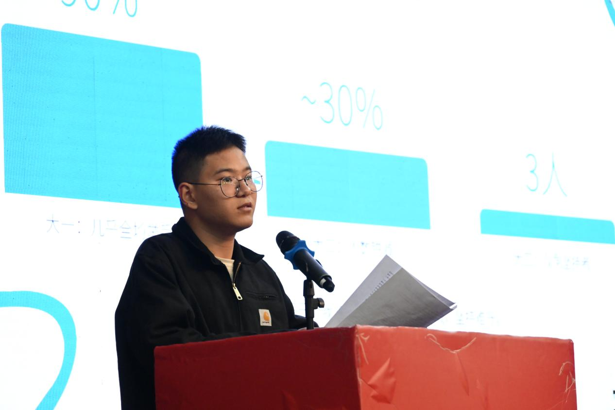 党员引领思想,青春映照党旗。中共预备党员吕婉婷以“燃青春之火,映党旗之红”为主题进行思想引领演讲,与在场学子共同探讨初心使命与青年担当。她在演讲中首先阐明了共产党人的初心使命,通过回顾中国共产党的百年历史,讲述了无数共产党人如焦裕禄、黄文秀等,为了人民的幸福、国家的富强,不惜牺牲一切的感人事迹,这些事迹深刻反映了共产党人全心全意为人民服务的初心。随后,她结合习近平总书记对青年的寄语以及党的二十大“两步走”时间表,提出青年应通过阅读红色书籍、参加“返家乡”社会实践、“挑战杯”等赛事、递交入党申请书等行动来践行使命。最后,她围绕“为什么入党”展开论述,用“入党不是终点而是新起跑线”、“不是荣誉叠加而是责任叠加”、“不是‘优秀加成’而是‘标准升格’”、“归根结底是信仰选择而非利益选择”四句话,引导师生正确认识入党的意义,呼吁新时代青年端正入党动机,主动承担责任使命。