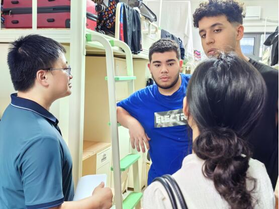 深入寝室,传递关怀。搬迁工作结束后,为及时了解学生入住新宿舍后的生活状况,我院党委副书记侯翔带领专职辅导员队伍对2021级学生、留学生宿舍进行走访。走访过程中,亲切询问了学生是否适应新的住宿环境,与2021级学生在考研、考公及就业等方面进行了深入探讨,帮助他们明确个人定位,合理规划未来道路;与留学生在中国的学习生活体验、中文交流能力提升等方面进行了探讨,并鼓励他们继续努力学习,不断增进对中国文化的理解和认同。