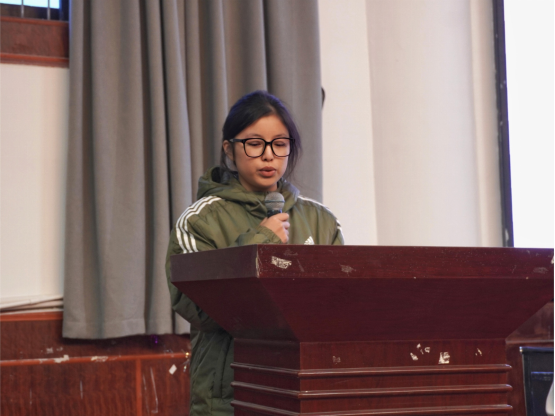 “学习标兵”颁奖仪式环节,学院教科办主任童恋然宣读“学习标兵”获得者名单,并表示希望全体学生能够向他们看齐,以他们为榜样,在接下来的时间里踔厉奋发、笃行不怠。
