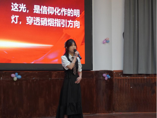 “学史明理、学史增信、学史崇德、学史力行”,随着主持人邓军航、刘凤琼同学铿锵有力的话语,一场以红色经典诵读为载体的故事分享会拉开帷幕。活动以传承红色基因为核心,通过诵读《红岩》《红色家书》等经典著作,搭建起历史与现实对话的桥梁,引领青年学子感悟“革命理想高于天” 的崇高信仰,探寻红色精神的深邃内涵。