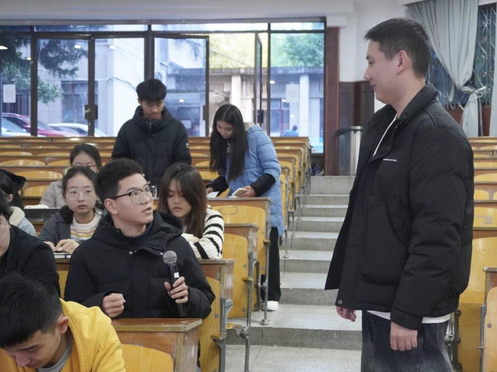此外,针对面试环节,苏豪向同学们传授了应试技巧。他通过生动的案例,详细讲解了面试礼仪、答题思路与语言表达的关键点,并鼓励大家培养清晰的逻辑思维与灵活的应变能力,学会结合时事热点与自身见解,保持自信与从容的心态,给出有深度、有条理的回答。在互动问答环节,有同学提出“对于我们这个层次的学校,何时开始备考公务员较为合适”的问题,苏豪耐心解答道:“备考自然是越早越好,素材的积累是一个循序渐进的过程,丰富的知识储备将为你的考公之路增添更多助力。”